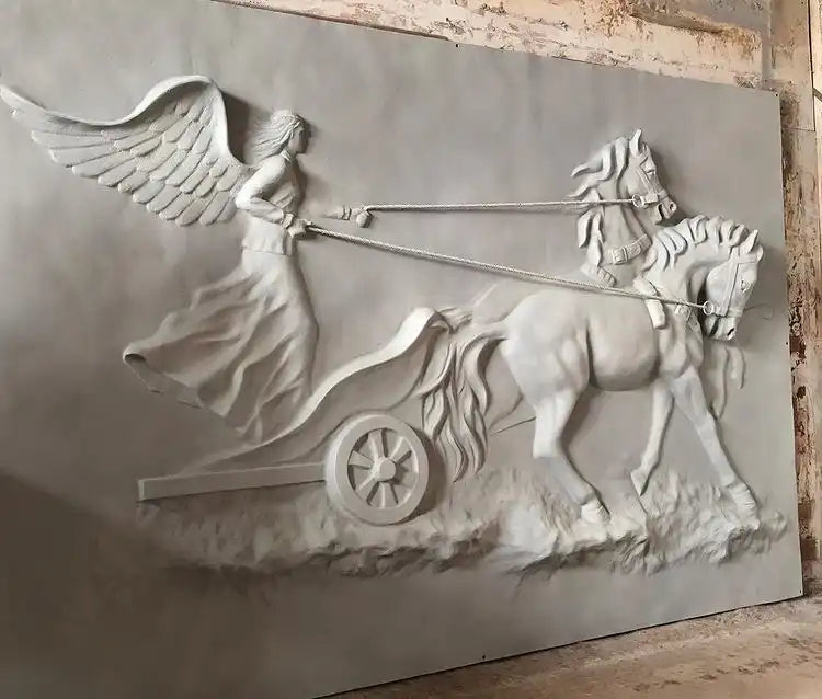 Embossed Angel Sculpture with extraordinary expressive power. The door of your space will open to different realms with this sculpture. We highly recommend that you contact us before purchasing this very special piece.
